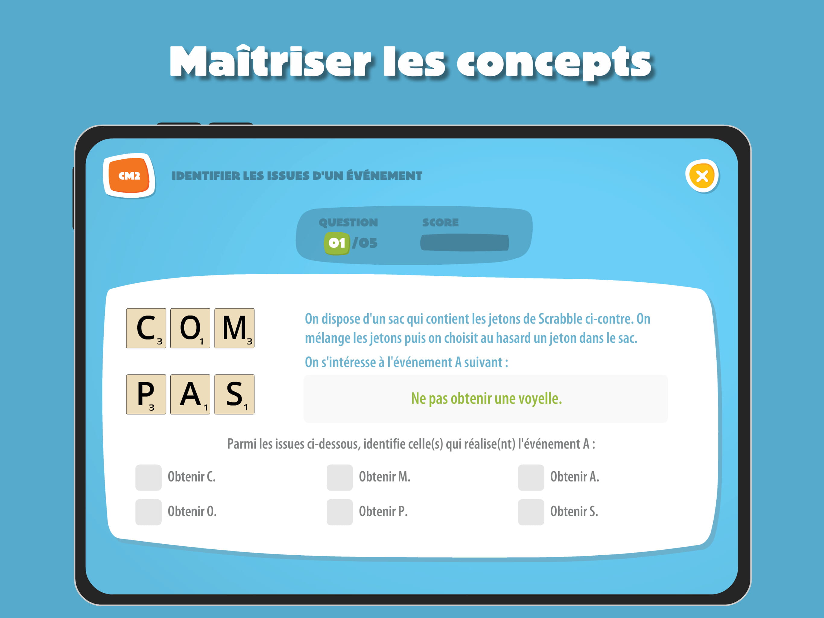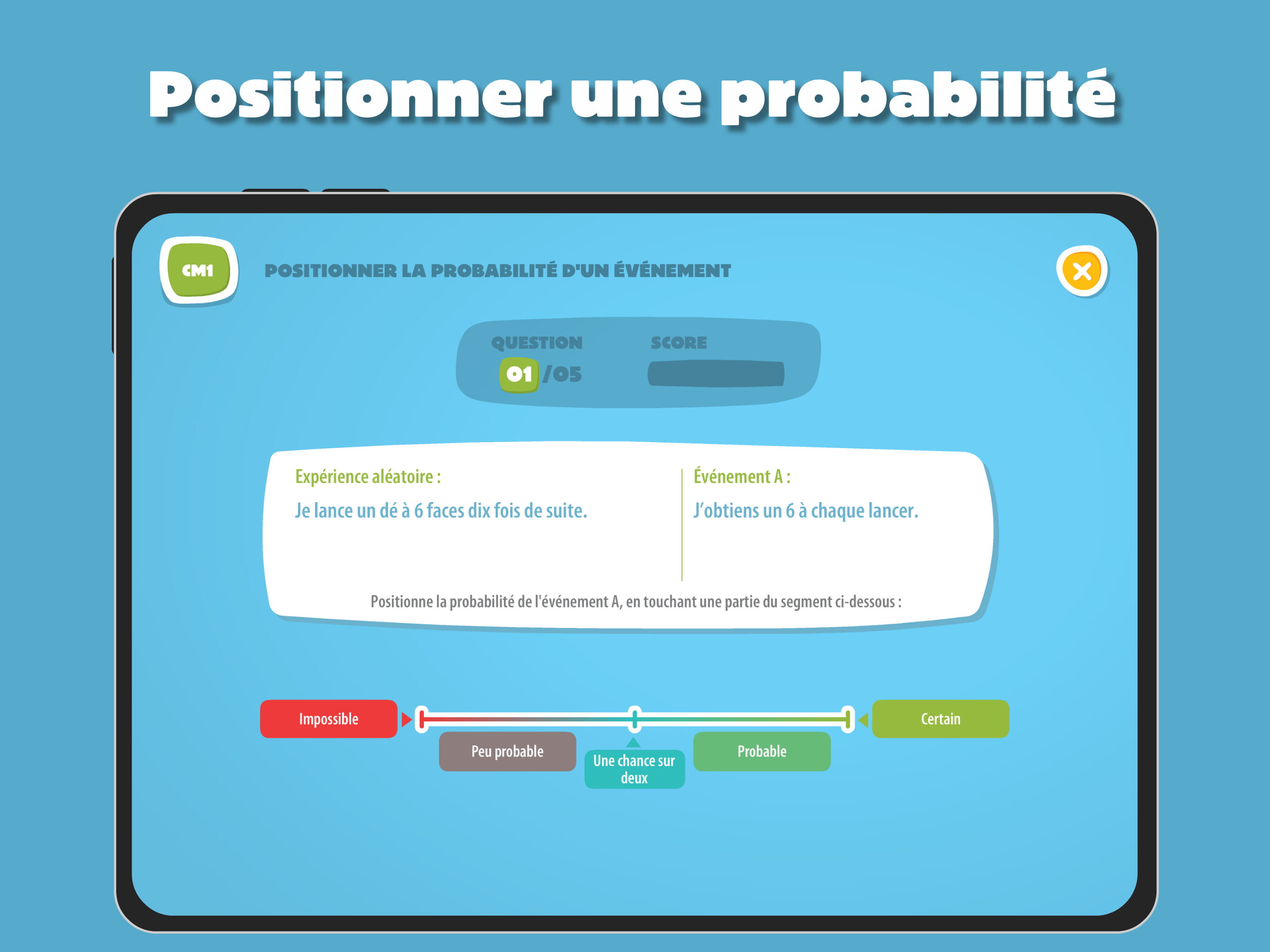 Aléa est une application qui permet de travailler les probabilités au cycle 3, de façon progressive.